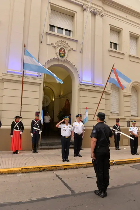Las actividades comenzaron a las 08:00 horas con el izamiento del Pabellón Nacional y Provincial en el frente de la Jefatura Central. La ceremonia estuvo a cargo del Jefe de Policía de la Provincia, Comisario General Licenciado Claudio Omar González, acompañado por el Subjefe de Policía de la Provincia, Comisario General Licenciado Juan Marcelo Claucich, junto a integrantes de la Plana Mayor policial y personal de la Jefatura.